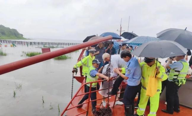6月25日,由于永修吴城水上公路被淹,吴城居民需要乘坐渡船进出。为确保居民水上出行安全,永修县公安局水上派出所和吴城交管中队在渡口定点值班,帮助群众渡船,维护现场秩序,全力保障辖区群众出行安全。
