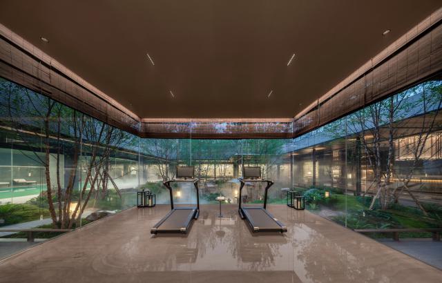 游泳池、健身、阅读、接待室植入下沉庭院的功能会所,围绕中庭景观排列。