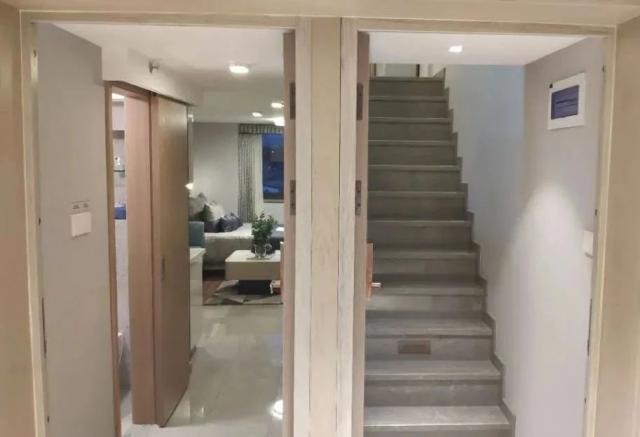 分成上下两层,做了两个入口门,一个房子有两把钥匙。其实也是以两套公寓的名义卖给买家的。