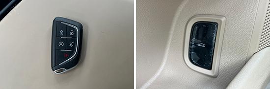 测试车配备了整车无钥匙进入功能,携带遥控钥匙或蓝牙钥匙,然后按下门把手后端位置解锁车辆。虽然凯迪拉克 IQ 锐歌是纯电动汽车,但是和大多数传统品牌一样,都设置了一键启动按钮,它位于方向盘右前方,使用非常方便。值得注意的是,IQ 锐歌虽然选择了怀挡设计,但是需要向驾驶员一侧带动,然后再上下拨动档杆选择。 R 挡或 D 挡住,目的是避免驾驶员误操作。