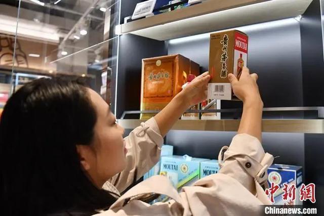 资料图:四川成都,一位消费者在超市购买贵州茅台。中新社记者 张浪 摄