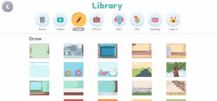“Create创作”模块,顾名思义,就是让孩子随意创作,孩子可以自由创作。绘画,图片也可以涂色。这两个模块主要适用于年纪偏小的小孩: