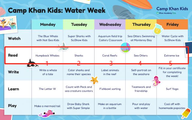 Camp Khan 官方Kids可汗专为2-8岁小孩打造的“免费在线夏令营”(国内娃可以玩到10岁),持续一个月。