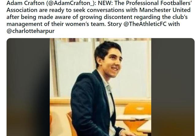 TA 的记者 Adam Crafton(上赛季独家揭秘曼联计划让格林伍德复出的记者)报道称,球员工会开始向曼联寻求麻烦,称曼联对女队不友好,他的报道有影响力,尤其是英超女权主义者会特别关注这件事,评论区已经有女权主义者开始说话。