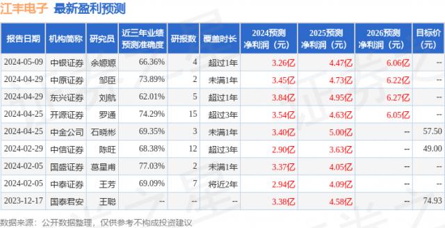 根据证券之星数据中心近三年发布的研究报告数据,郭盛证券葛星甫研究员团队对该股进行了深入研究,近三年的预测准确度平均值为 预测77.03% 2024 年度归属净利润为利润 3.37 十亿,根据现价转换预测。 PE 为 37.03。