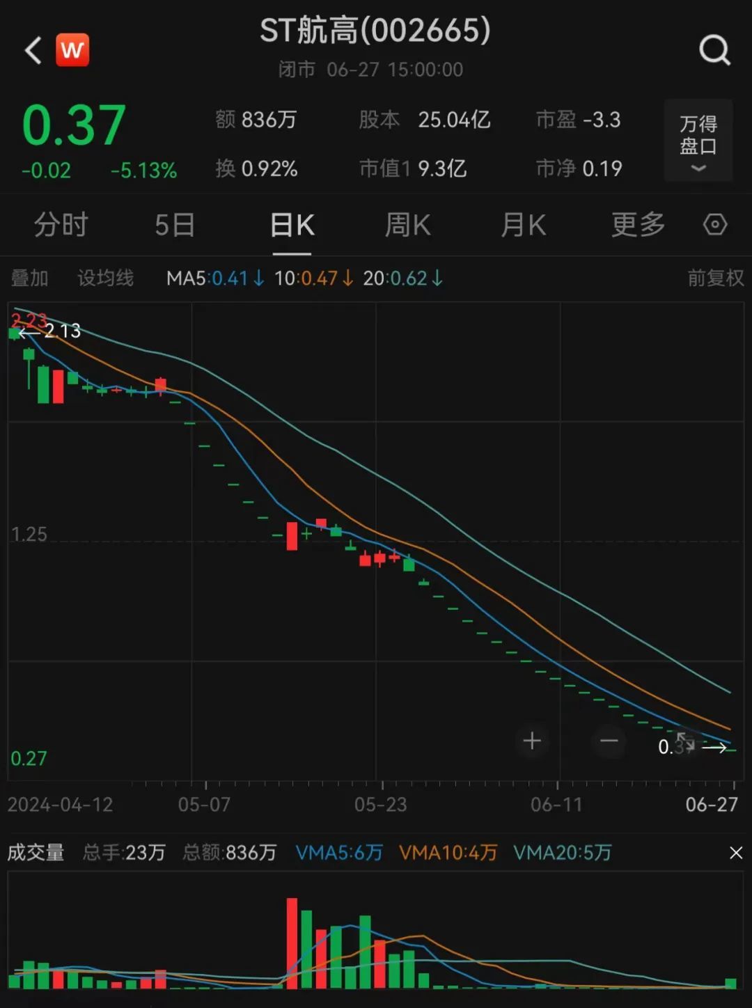 ST航高6月27日晚宣布,截至2024年6月27日,该公司股票收盘价已连续20个交易日低于1元,已触及强制退市情况,该公司股票将被深交所终止上市交易。自2024年6月28日(星期五)开市以来,该公司的股票将停牌。