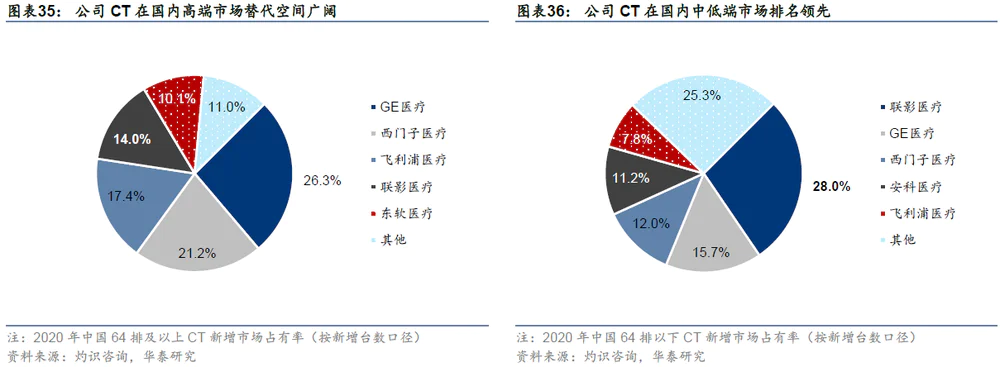 根据公司公告,联影在2023年国内CT市场份额排名第二,其中CT市场份额排名第一,CT市场份额排名第40及以下,CT市场份额排名第41-63;CT市场份额排名第64-80,128-256,CT市场份额排名第2。