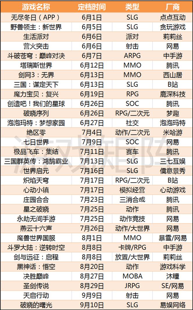 游戏矩阵简要总结了近几个月推出的关键产品,有的产品正式明确表示档期,有的产品通过iOS预约日期等方式统计预估上架时间。从列表中可以看出,今年夏天的档案不再挤在同一条跑道上,以DNF为主要用户群体的产品数量正在增加。