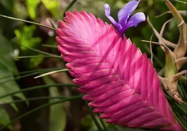 空气菠萝是菠萝植物中的一个特殊群体。它的特点是生长不需要从土壤中吸收养分,也不需要种植在水中。这是一种特殊的气生植物,只需要洒水就能生长。灰色的鳞片密布在茎和叶子上,不仅有助于反射太多的阳光,防止被太阳灼伤,还能捕捉空气中所有可用的水蒸气和氮化合物,具有很强的除湿功能。