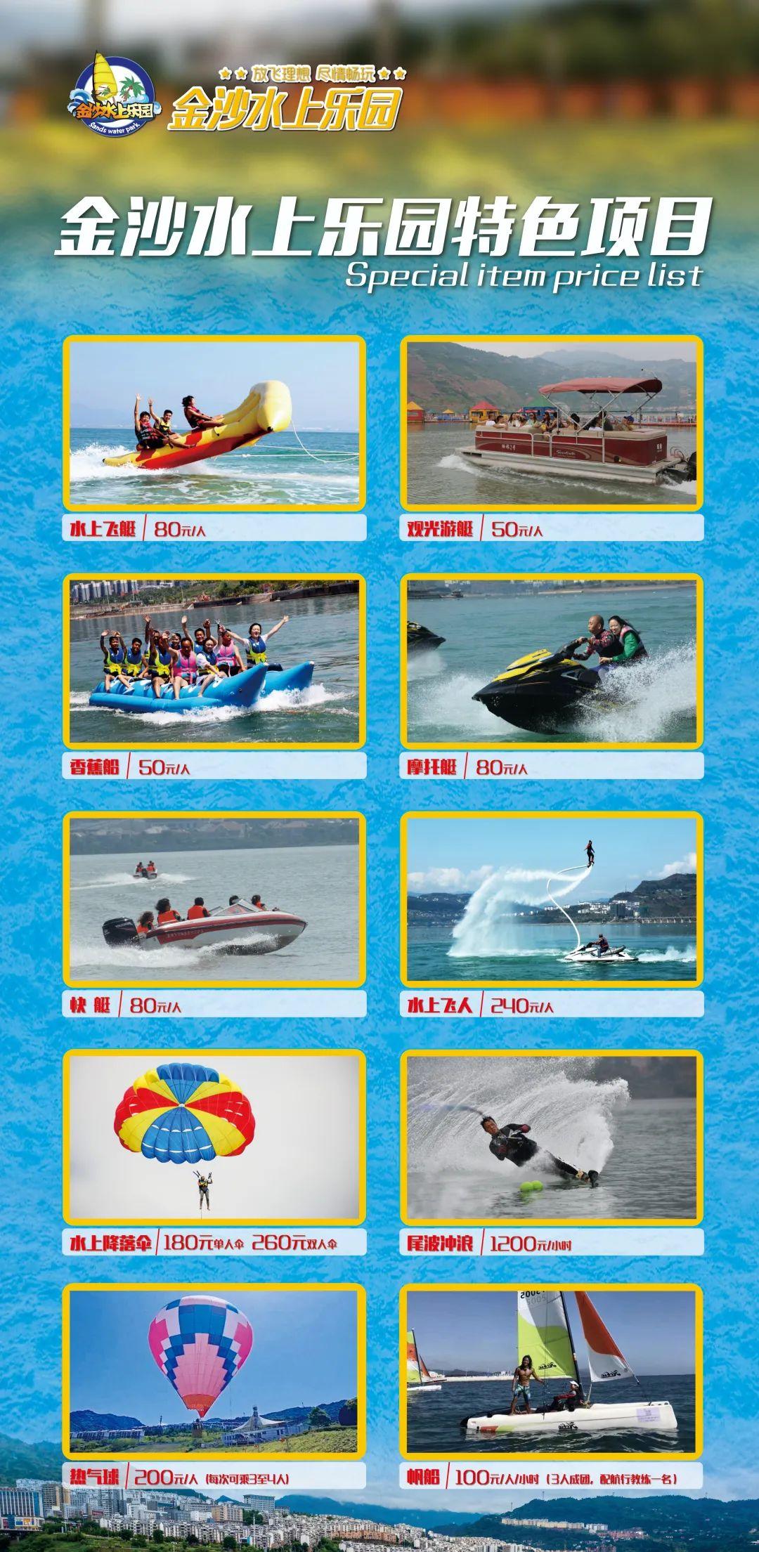 在这里,头上的蓝天,脚下的绿水,浸泡在纯天然的金沙江水中,吹着江风品尝一壶好茶,乘坐热气球进行一次空中之旅,拉着水上降落伞感受惊心动魄的刺激,一定会让你淋漓尽致。这里也是云南中国特技滑水队的训练场。他们在这里长期驻扎训练,让游客参与和观看世界冠军带来的水上特技表演,在这里体验不同的水上极限!