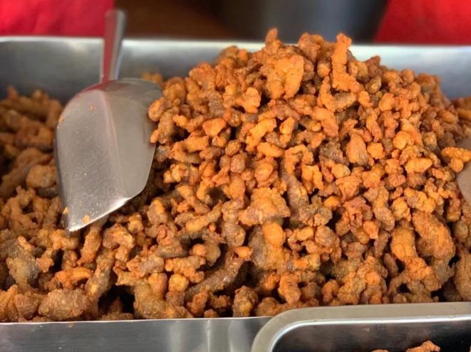 梅干菜则被猪油浸润得乌黑发亮,伴随着酥皮的烟火气,一起冲击着口腔和鼻腔。