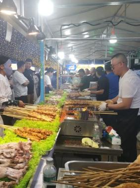 嘉年华的美食区依然人头攒动。美食摊琳琅满目,有东北特色油边,浇汁鱿鱼,麻辣小龙虾,散发出诱人的香气,让人垂涎欲滴。叫卖、烹饪和笑声交织在一起。人们在摊位之间穿梭,享受周末嘉年华带来的放松。