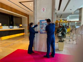 活动期间,大队通过了“检查” 巡查 “宣传”方式,对场馆周边单位和客人驻地酒店消防安全负责人、管理员、普通员工进行消防安全知识宣传培训,组织疏散逃生演练。同时,充分利用建筑电视、LED显示屏等。,增加消防宣传提醒的播放频率,通过新媒体平台和微信群实时发布消防安全提示和警示信息,不断提高人们的消防安全意识,全力营造良好的宣传氛围。