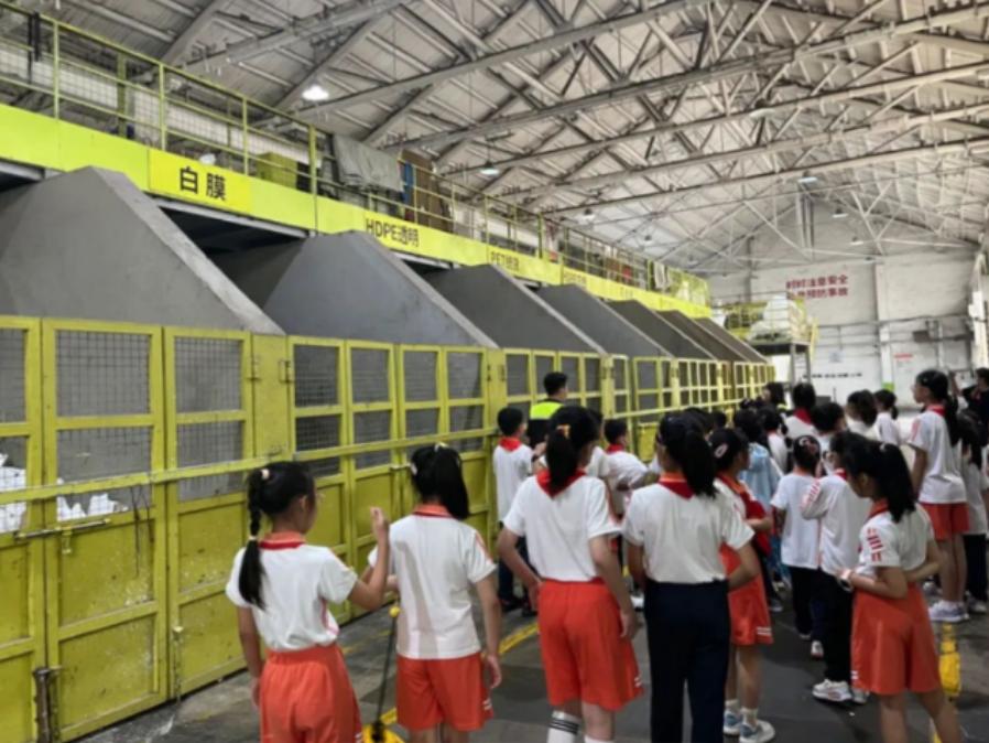 随后,老师和学生参观了“爱回收爱分类”的现代分拣中心。在这里,他们目睹了一系列智能化、标准化的回收过程,如中转运输、精细化分拣、压缩包装等。先进的回收技术让学生大开眼界,同时也让他们对垃圾分类和资源回收有了更直观的认识。