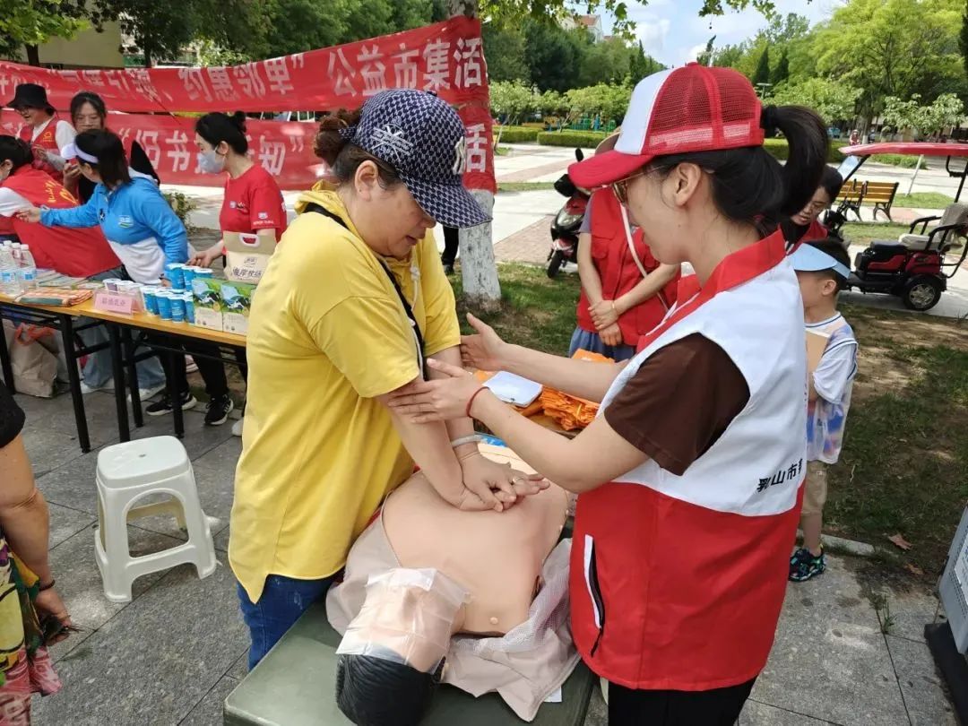 乳山市红十字走进利群社区“党建领导、约惠邻里”公益市场,设立防溺水应急救援知识摊位,向居民和儿童普及应急救援和防溺水知识。