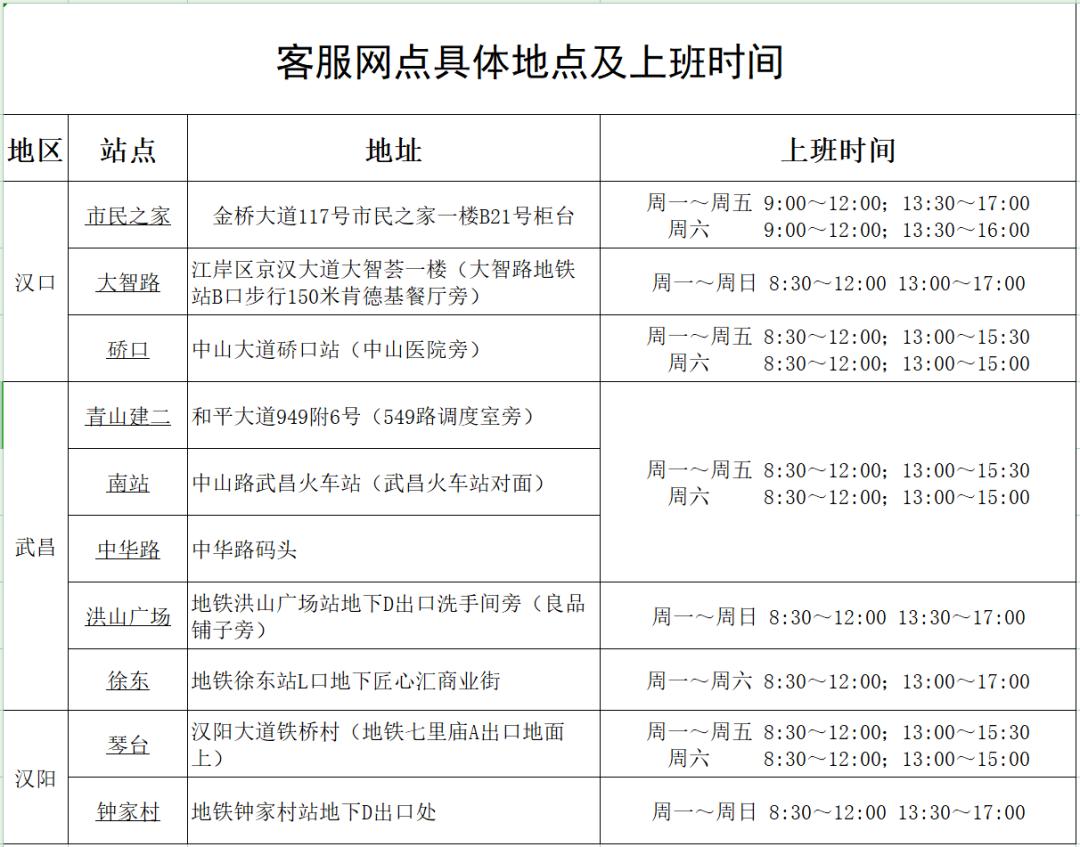 28日,武汉一卡通有限公司微信微信官方账号“我的武汉通”称:您可以通过支付宝上的“我的武汉通”小程序直接在线充值,安卓手机和苹果手机都可以使用。武汉通还公布了客服网点的具体位置,方便大家做生意。