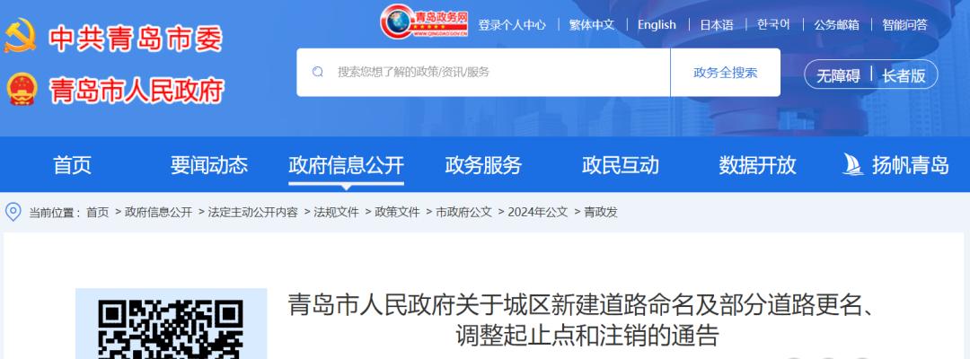 十.白石山路:起点不变,止点由灵海路调至胶州湾东路。