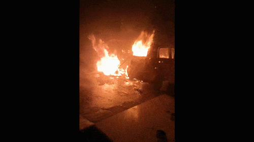 飞线充电遇暴雨 烧毁了两辆电动自行车