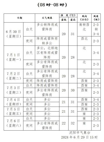 沈阳阴天转阵雨或雷阵雨。