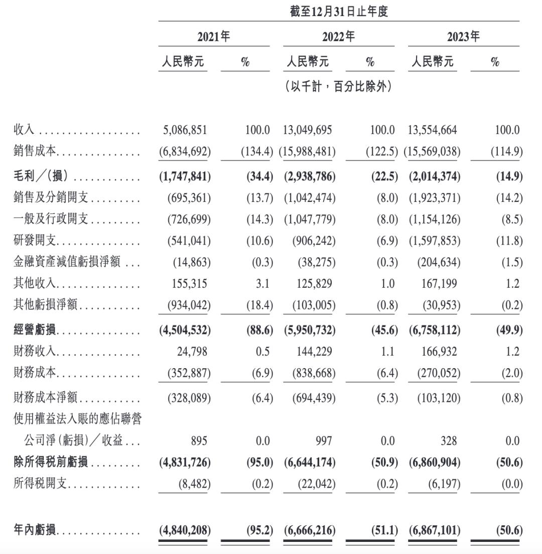 发现DoNews查询招股书,2020-2023年,合众汽车收入分别为50.87亿元、130.5亿元和135.55亿元;在收益增长放缓的同时,亏损也在加重,与此同时,亏损48.4亿元、66.66亿元和68.67亿元,三年内总亏损183.74亿元。