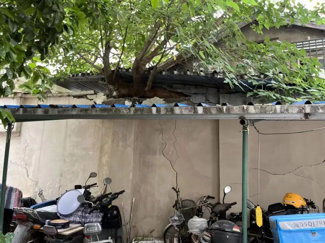 此前,这个位于浦路500小区与中山南1043小区交界处的院墙,因为旁边一棵不断生长的树,逐渐变成了“危墙”。树木在生长过程中不断扩张,导致原本坚固的墙壁出现裂缝和倾斜,随时有倒塌的危险。而且树下还有一个非机动车棚,居民每天穿梭在倾斜的墙壁上,难免让人担心,存在很大的安全隐患。