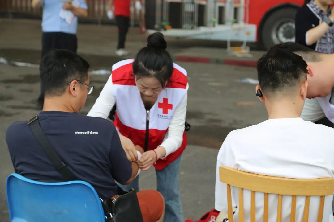 在救援过程中,红十字会工作人员及时治疗了模拟伤员,包括运输、包扎和除颤器的使用。与此同时,交通管理部门迅速开设警戒区,疏通交通,开辟绿色通道,确保救援车辆顺利到达现场。