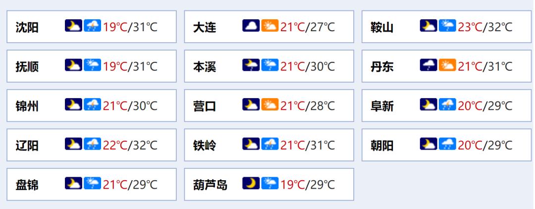 辽宁省气象台预测,今天白天到晚上,锦州、阜新、朝阳、葫芦岛有小雨到中雨,部分乡镇(街道)有大雨到暴雨,其他大部分地区有阵雨或雷暴,部分地区伴有强对流天气,如雷暴、冰雹和短期强降水。