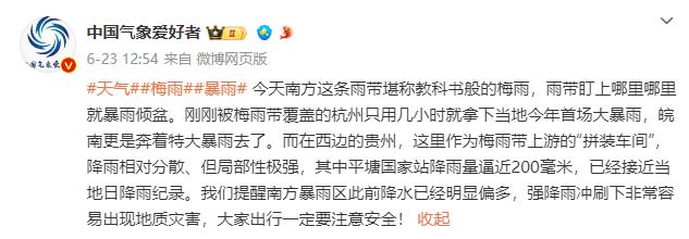 6月23日晚,话题“杭州灵隐寺发水”冲上微博热搜,西湖景区水位上升,被网友形容为“白娘子对决法海现场”。湖南省长沙市也遭遇了暴雨,城市道路和地铁站存水严重。大家都开玩笑说农民工需要“开船”。