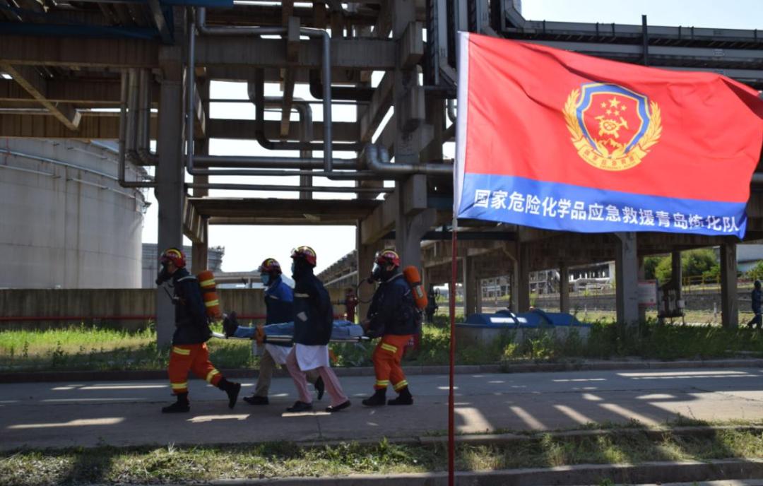 演习期间,青岛炼化队派出39名指战员、9辆救援车辆,组成应急救援小组、现场安全小组和医疗救援小组进行救援演练。