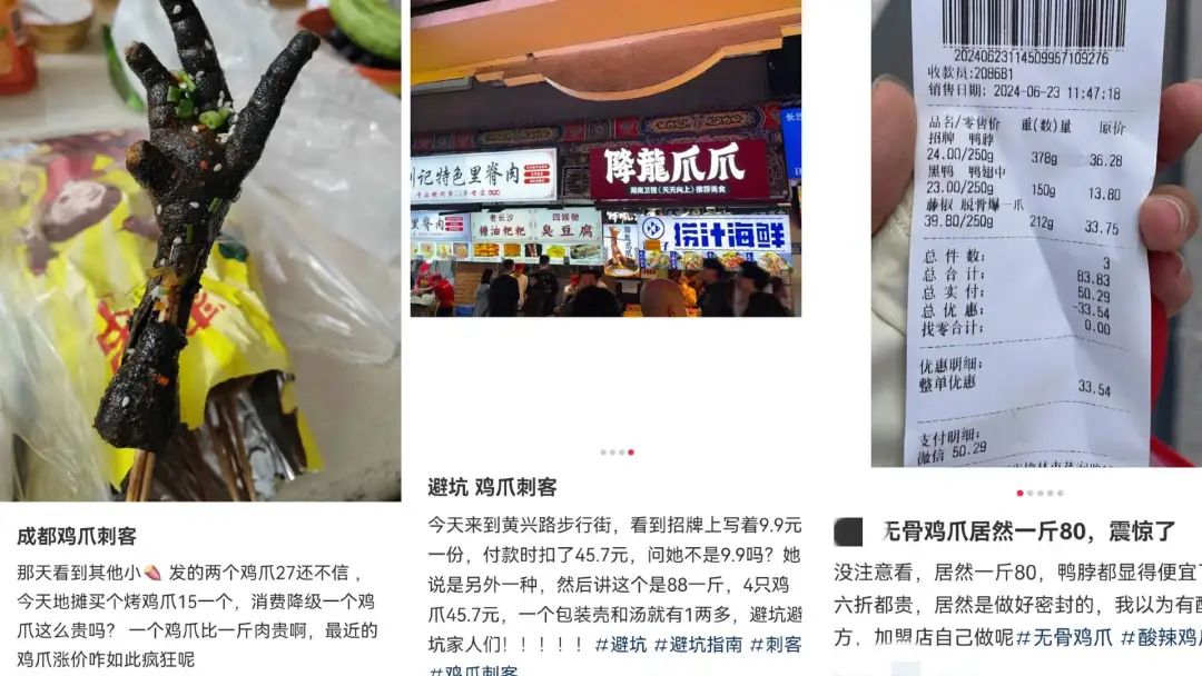 有网友说:“我在街边小摊上随便买了一只烤鸡爪,拿了15块钱,一只鸡爪比一斤肉还贵。”还有人说:“我在卤味店买了一盒50元/250克的脱骨鸡爪,花了130块钱。我真的很粗心。谁能忍受这个?我不能退缩。”