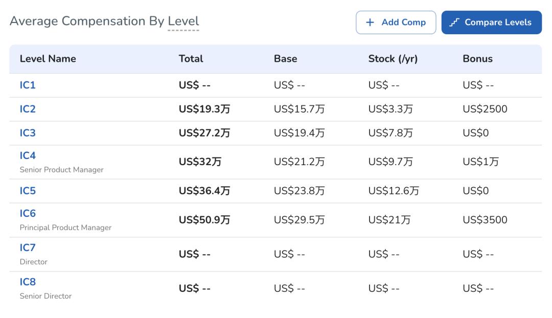 美国科技公司薪资、福利数据采集网站 Levels.fyi 数据显示,英伟达的产品经理(总共八级中的第三级)每年平均可以获得 77700 股票收益为美元。
