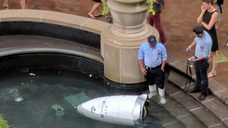 《纽约时报》早在2017年就有报道称,美国华盛顿港湾(Washington Harbour)上周刚刚在综合商场上任的一名安全机器人,在上岗巡逻时,掉进了水池。