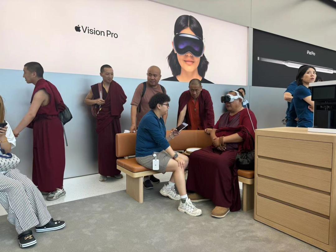 成都太古里 Apple Store,在店里感受一下 Vision Pro 的僧人。