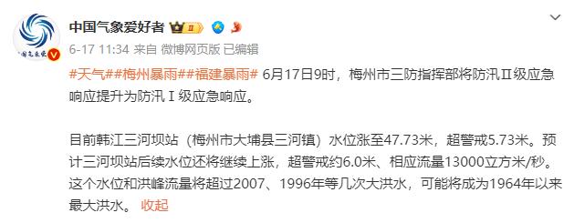 自6月13日起,广西共有11个城市的64个县(市、区)发生了强降水灾害。截至19日16时,已造成43.1万人受灾。此后,广东省梅州市也遭遇了大雨,平远县遭遇了洪水灾害。