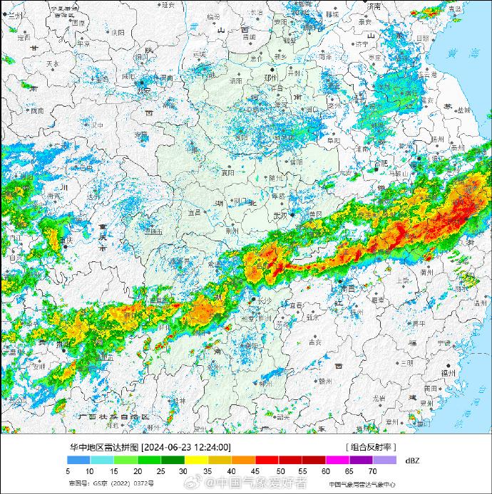 六月底,长江流域分布着一条梅雨带。 (图/@中国气象爱好者)