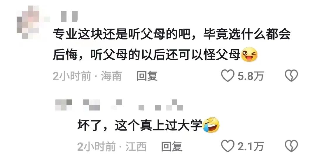 小红书里有更多的年轻人,显然大家都在吐槽:能不能别让我爸妈管我选专业?