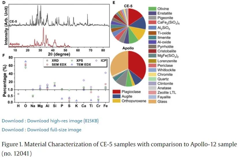 需要指出的是,研究小组在本文中提到的阿波罗月球样本(编号12041)由阿波罗12号收集,其X射线衍射模式的分析结果显示了月球壤中的矿物质丰度,而不是网络化学分子。这种比较并不意味着嫦娥五号和阿波罗所有月球样本之间的整体比较结果。此外,与网络爆炸相反,阿波罗12041样品中约有三分之一的玻璃,玻璃的比例在阿波罗计划的多次采集样品中不容忽视。