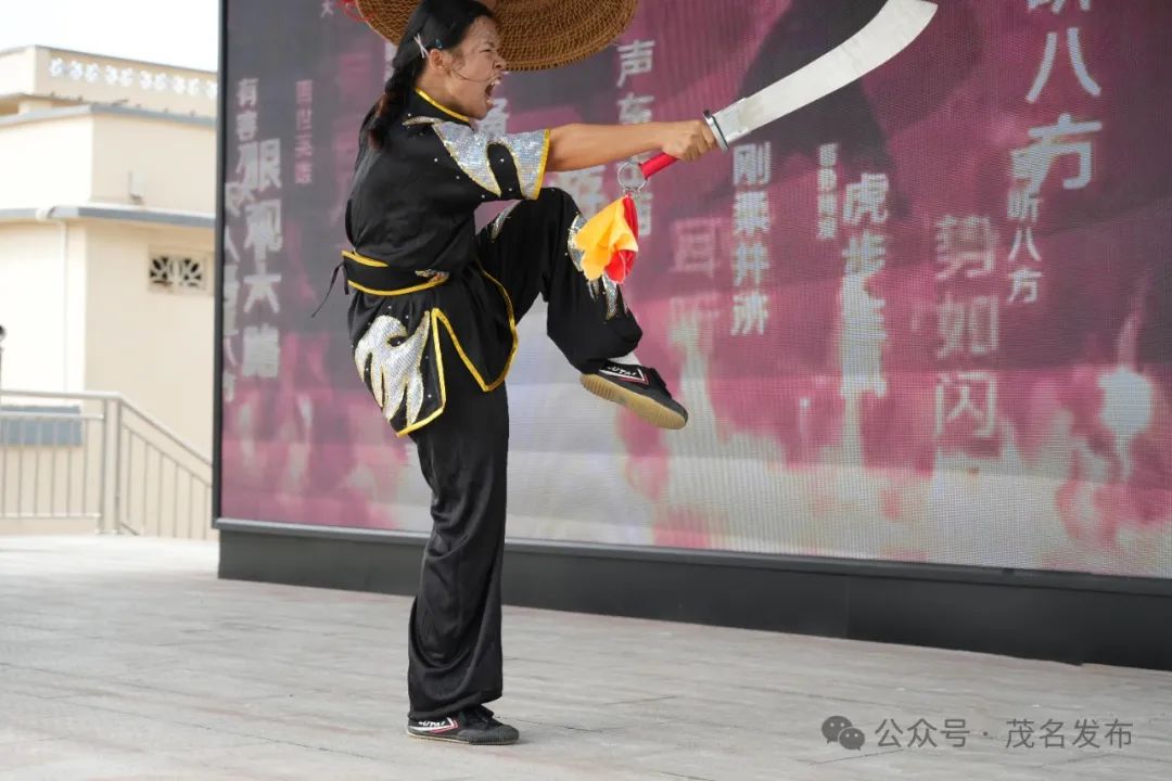 茂南洪拳强悍,气势如虹,武者矫健有力。跳起拳头,俯身躲闪,舞刀弄枪...一举一动,似乎有十种动物的形态和动作,如龙、蛇、老虎、豹、鹤、狮、象、马、猴、彪等。,展现了洪拳的风采,在油城市的舞台上崭露头角。每一次攻击都让人兴奋不已,观众的欢呼声此起彼伏,为武者的勇敢欢呼。