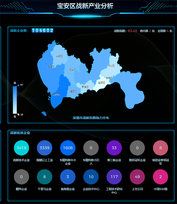 值得注意的是,深中通道鹤洲立交,东端深圳市宝安区,西至中山市横门枢纽,宝安起着“核心枢纽”功能,将深圳融入湾区。目前,深圳有6个总部经济聚集区在宝安布局。根据前瞻性智能投资系统,以影石为代表的高科技企业有10多万家新企业和3419家高新技术企业,促进了新质量生产力的加快形成。