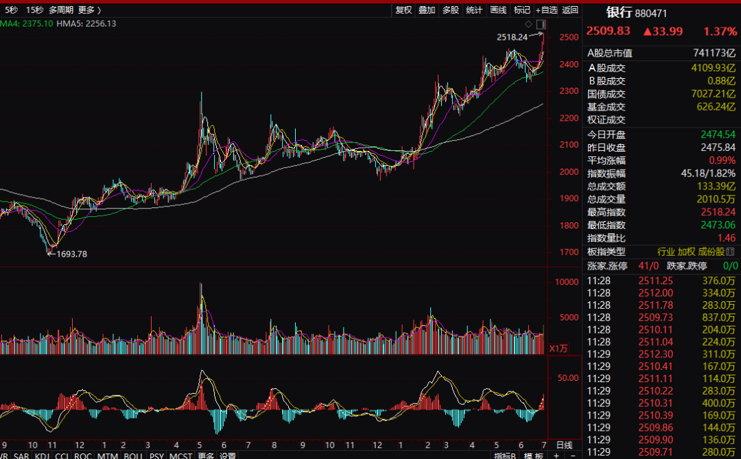 7月份,银行股密集开启年度分红分红,甚至宣布中期分红,股价大爆发,板块创历史新高。被誉为“宇宙银行”的工行,a股股票上涨了1.89%,再创6年多新高。