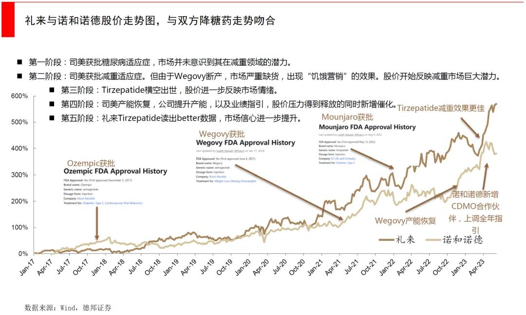 一个月前,礼来的替尔泊肽被批准上市,糖尿病适应症被批准用于改善成人2型糖尿病患者的血糖,减肥适应症仍在等待许可。这是诺和诺德司美格鲁肽走过的路。