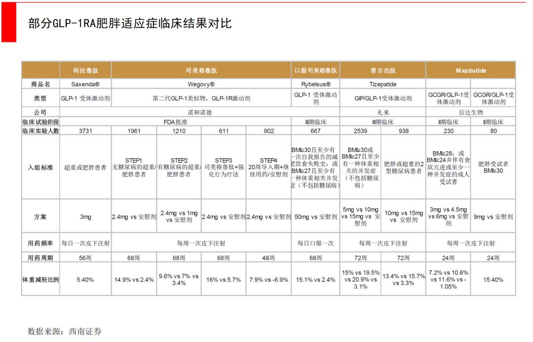 3、中邮证券:GLP-RA开启了降血糖减肥治疗的新周期,创新推动了产业链高景气发展。