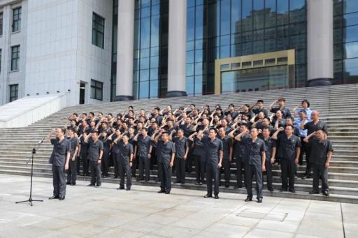 现场,全体党员面对鲜红的党旗,郑重举起右拳,齐声庄严宣誓,重温热血沸腾的誓言:“我自愿加入中国共产党,支持党的纲领,遵守党的章程,履行党员的义务,执行党的决定。”..”铮铮誓言,真诚地表达了全体党员全心全意为党的司法工作作出贡献的坚定决心。