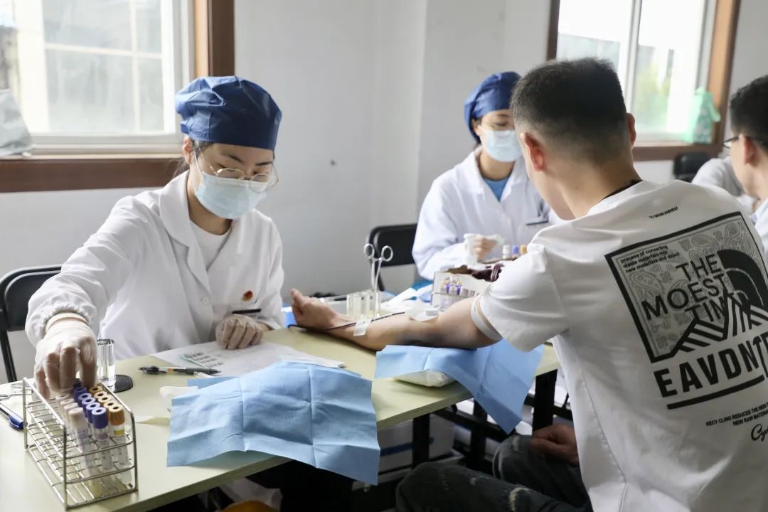 “握紧拳头,伸直手臂...献血后早点回来休息,不要熬夜,多喝水。”考试合格后,志愿者们伸出手臂,医护人员熟练地抽血,亲密地告诉他们。