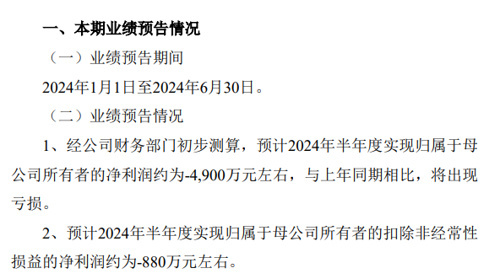 万业公司披露了2024年半年度业绩预测,预计2024年半年实现归属于母公司所有者的净利润约为-4900万元,与去年同期相比,将出现亏损。去年同期,万业公司归属于母公司所有者的净利润为1.186亿元。