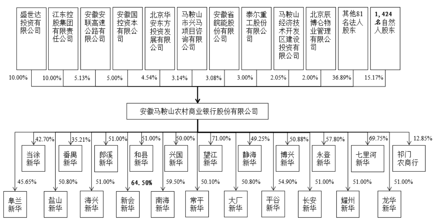 根据马鞍山农商银行2023年9月公布的招股书,截至招股书签署日期,盛世达投资有限公司(持股比例10%)是马鞍山农商银行的前五大股东、江东控股集团有限公司(持股比例10%)、安徽省安联高速公路有限公司(持股5.13%)、安徽国控资本有限公司(持股比例5%)、北京华安东方投资发展有限公司(持股比例4.54%)。
