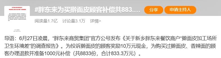 就像前不久那个一样 “ 胖东来为购买擀面皮顾客补偿 883.3 万元 ” 。