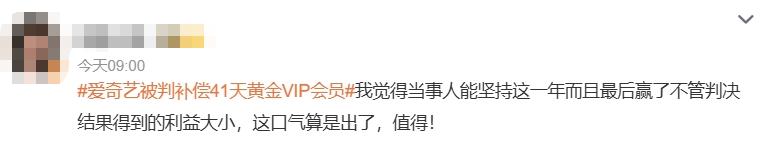 这一次 “ 爱奇艺被判赔偿 41 天黄金 VIP 会员 ” ,单一的社交媒体平台就有附近 2 阅读量1亿,霸榜热搜 8 小时...