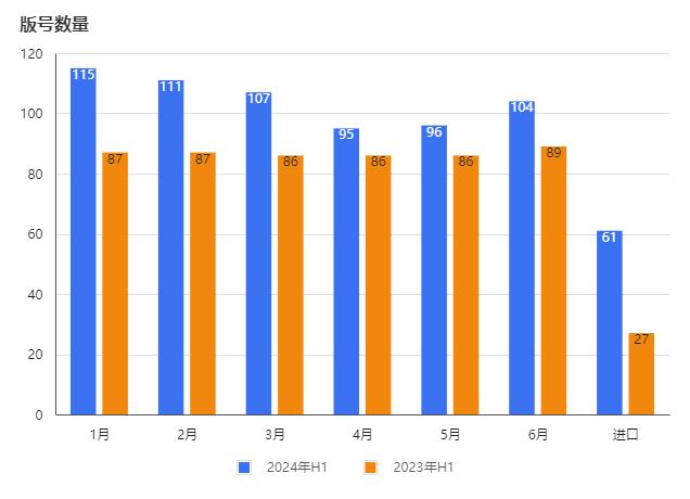 根据手机游戏的统计,得益于今年版本数量的稳定发放,2024年H1版本数量达到689,比2023年H1的548版本数量同比增长25.73%。如果把半年的数据放大到全年,2024年H1版本数量将占到2023年全年64.09%左右,可以预见,2024年将会有更多的新产品冲击需要复苏的游戏行业。