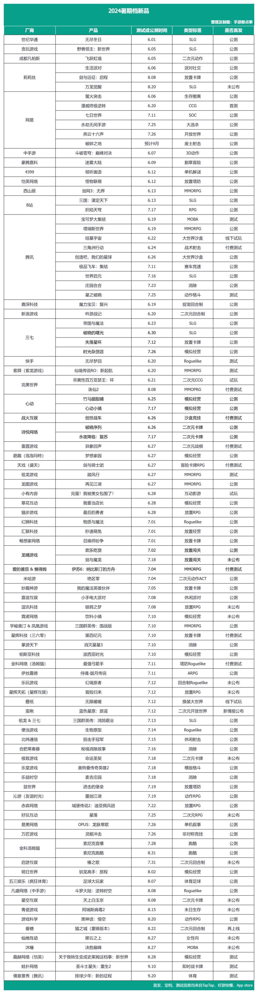 不是,根据手机游戏的统计,经过5月和6月的第一轮战斗,已经有100多种产品参加了暑期档的竞争。其新产品的密集时间表使得这个暑假几乎每个自然周都有一个新产品。